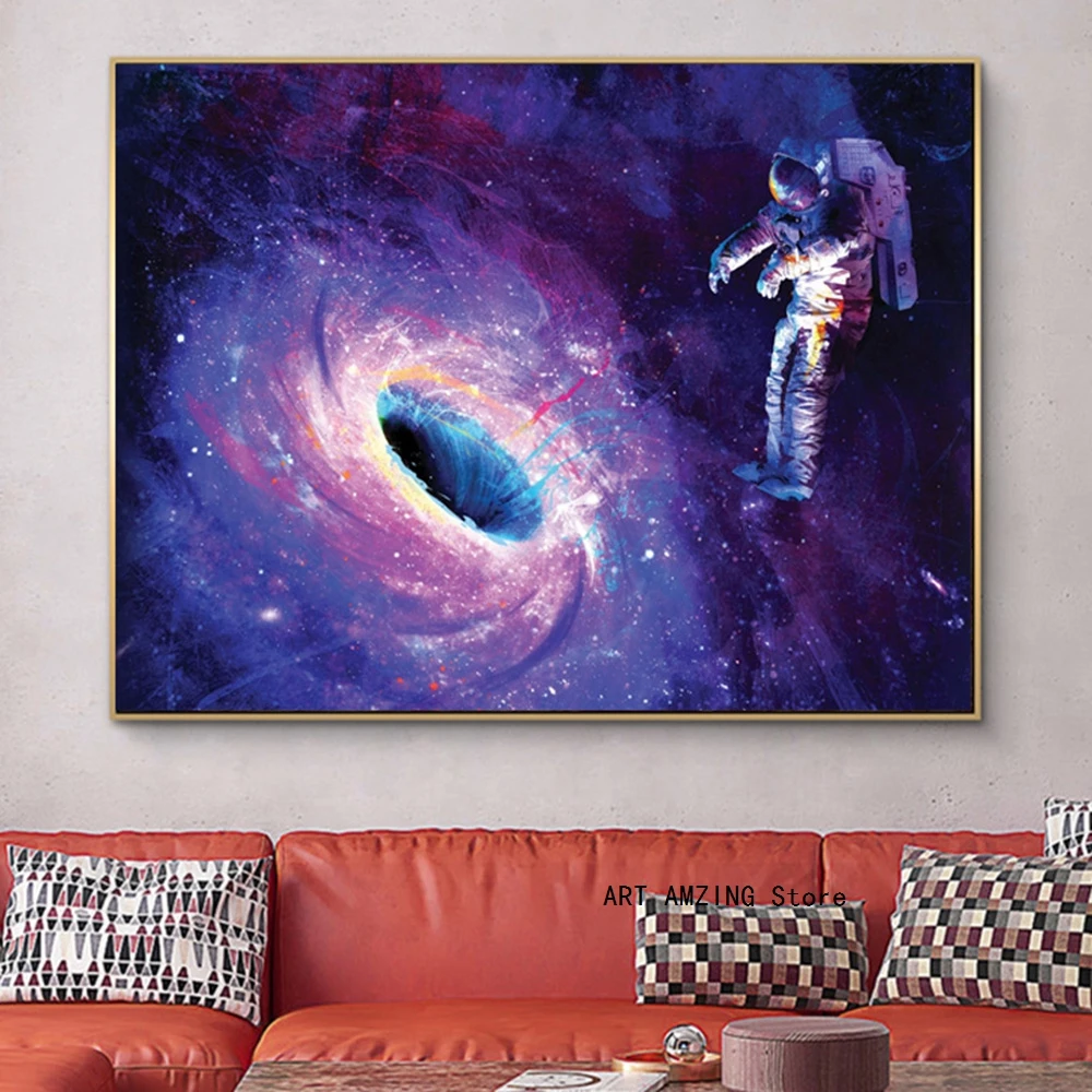 Astronaut In Galaxy Black Hole Canvas Painting Posters And Prints Universe Outer Space Wall Art Picture Decor For Living Room Painting Calligraphy Aliexpress